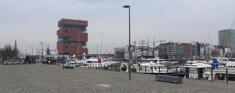 The Steenplein near the medieval castle Het Steen (‘The Stone’) is a bit of a parking lot when it’s not hosting a concert, an ice skating rink or a fair. But it has benches, trees and a view on the river Scheldt (Schelde in Dutch).