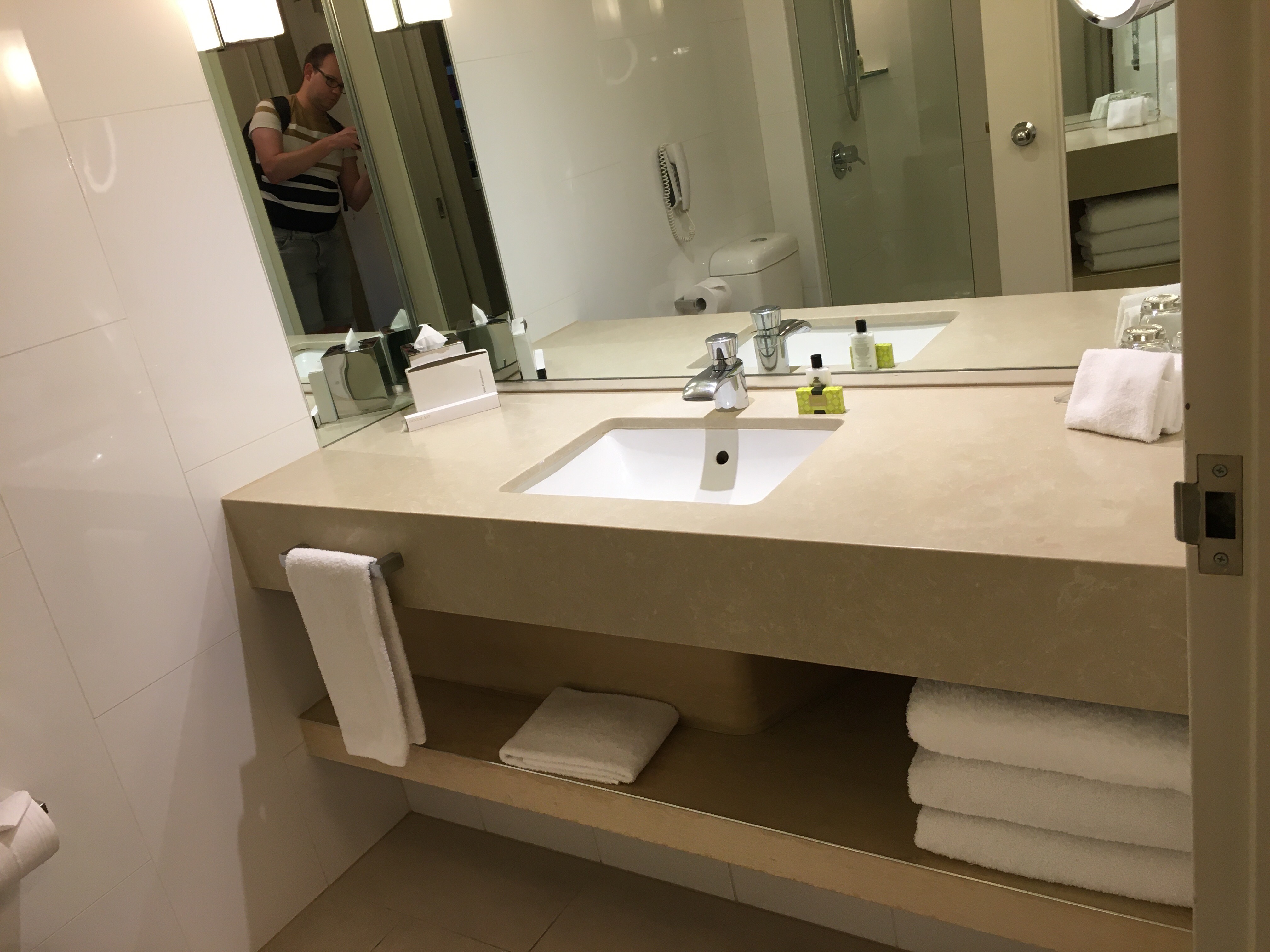 The bathroom reminded me a lot of the Intercontinental Toronto in having a very similar design, but a different colour palette. I really liked the rain shower, but Timothy would have preferred to have a proper bath.
