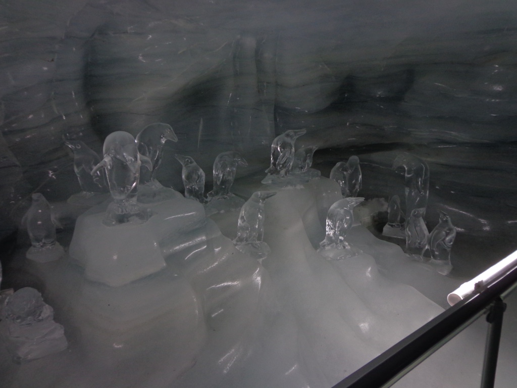 On the top of the Jungfrau you can get some spectacular views on the outside terraces, while inside the buildings and the mountain they dug out a whole attraction park with souvenirs shops, restaurants, an ice sculpture grotto and some kitschy alp inspired art in the corridors.