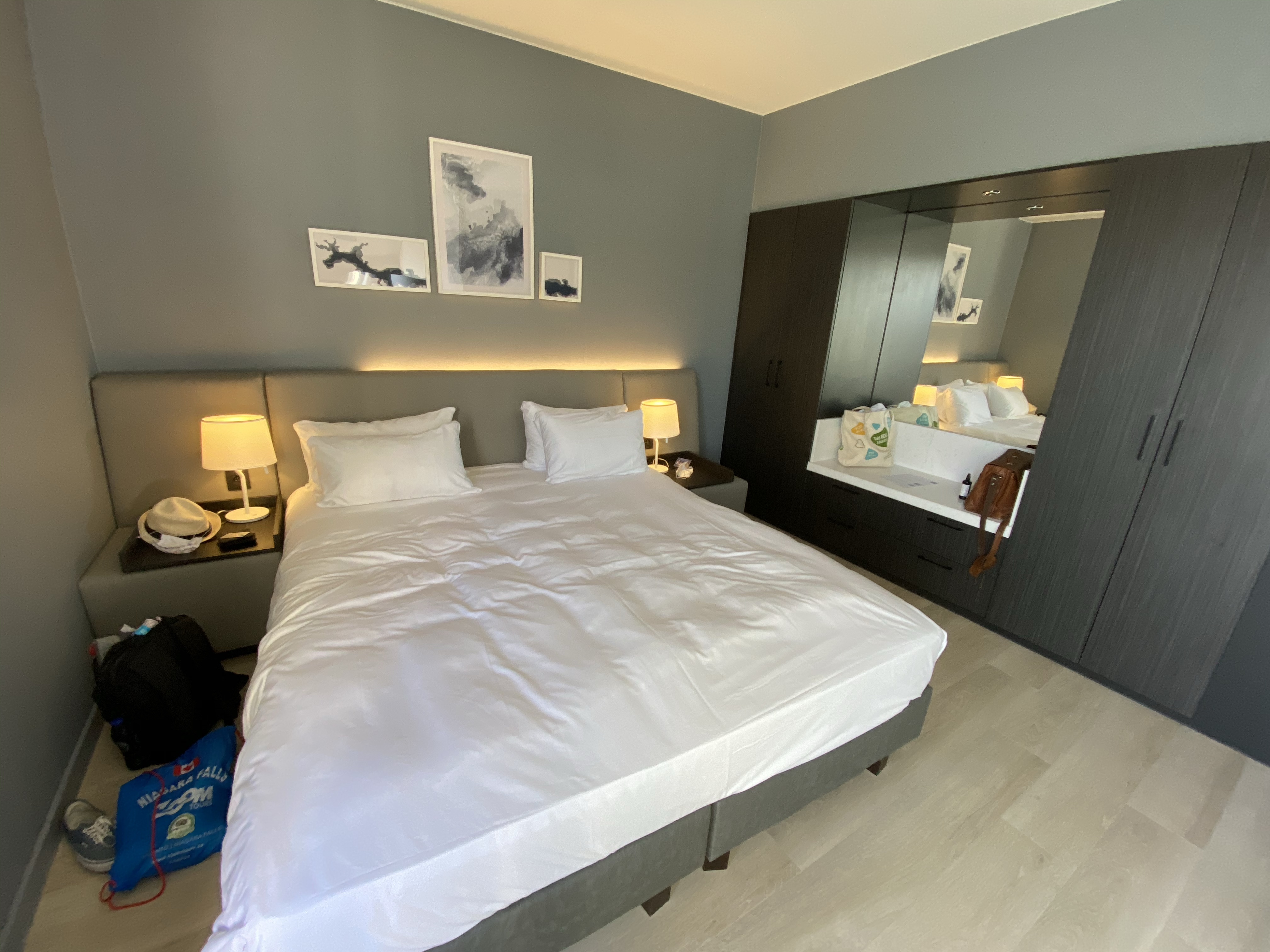 The bed was comfortable and spacious and a big closet was put against the wall to the corridor, providing ample storage space.