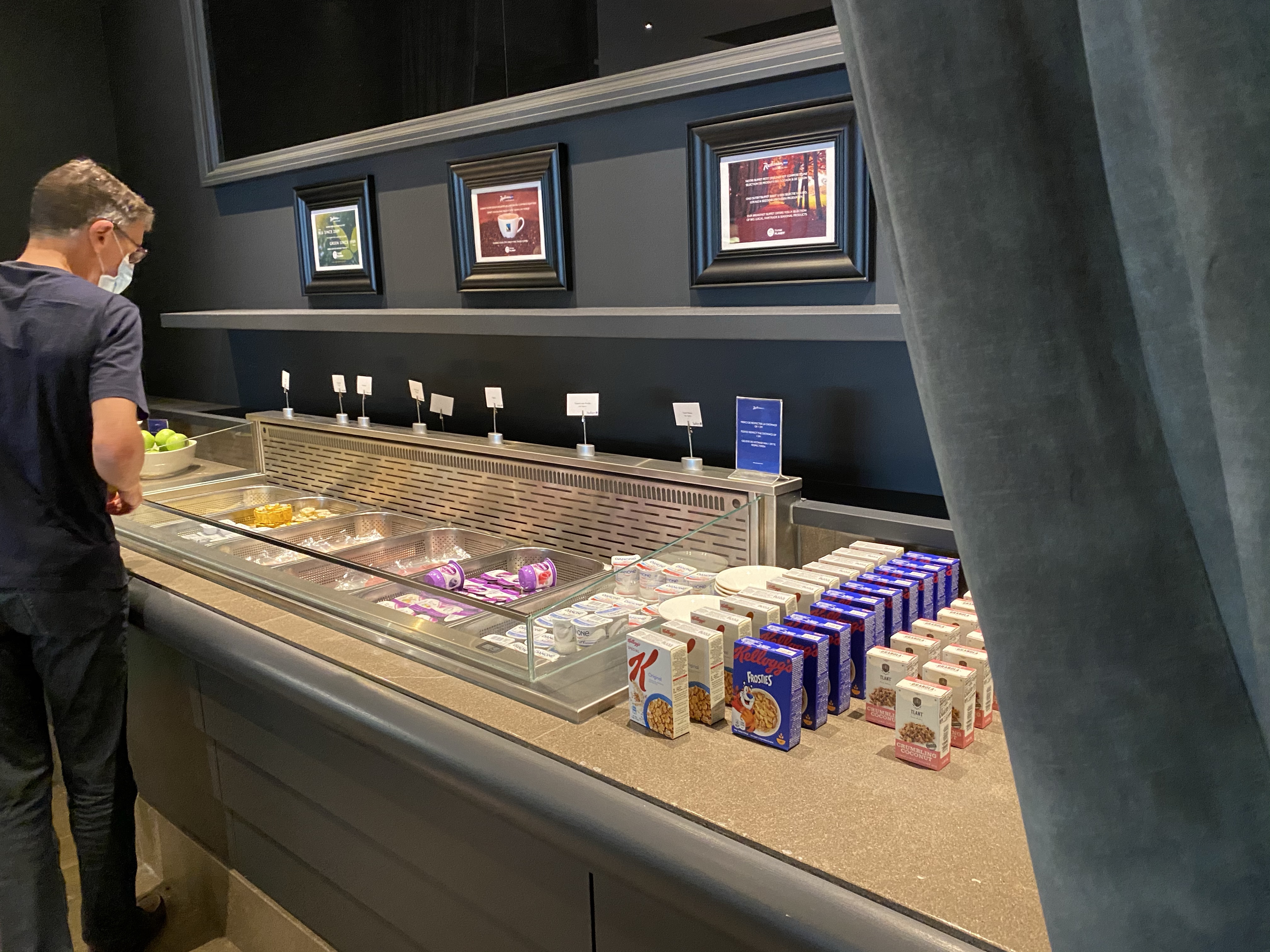 However the rest of the buffet remained much as it would be in non-corona times. While most things where pre-packaged, you still had to grab it yourself from the buffet. And while they tried to install some system of guising people around using banners and arrows on the ground, this miserably failed.