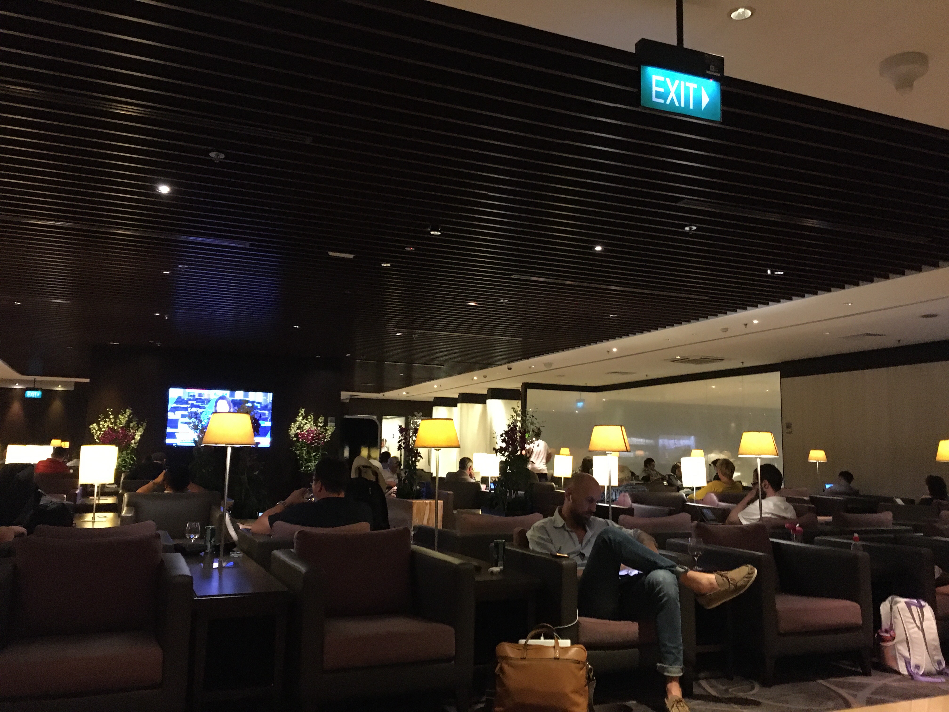 After arriving with a small delay from Sydney, we walked from our arrival gate in Terminal 2 to the SilverKris Lounge in Terminal 2. This used to be Singapore Airlines’ flagship lounge before they moved most operations to the newer and larger Terminal 3. Unfortunately the lounge was stuck in that heyday and feels like it hasn’t been updated since. It basically is one big relatively dark room without windows and a bunch of seating, mostly in the same style although there was a small business centre aswell.