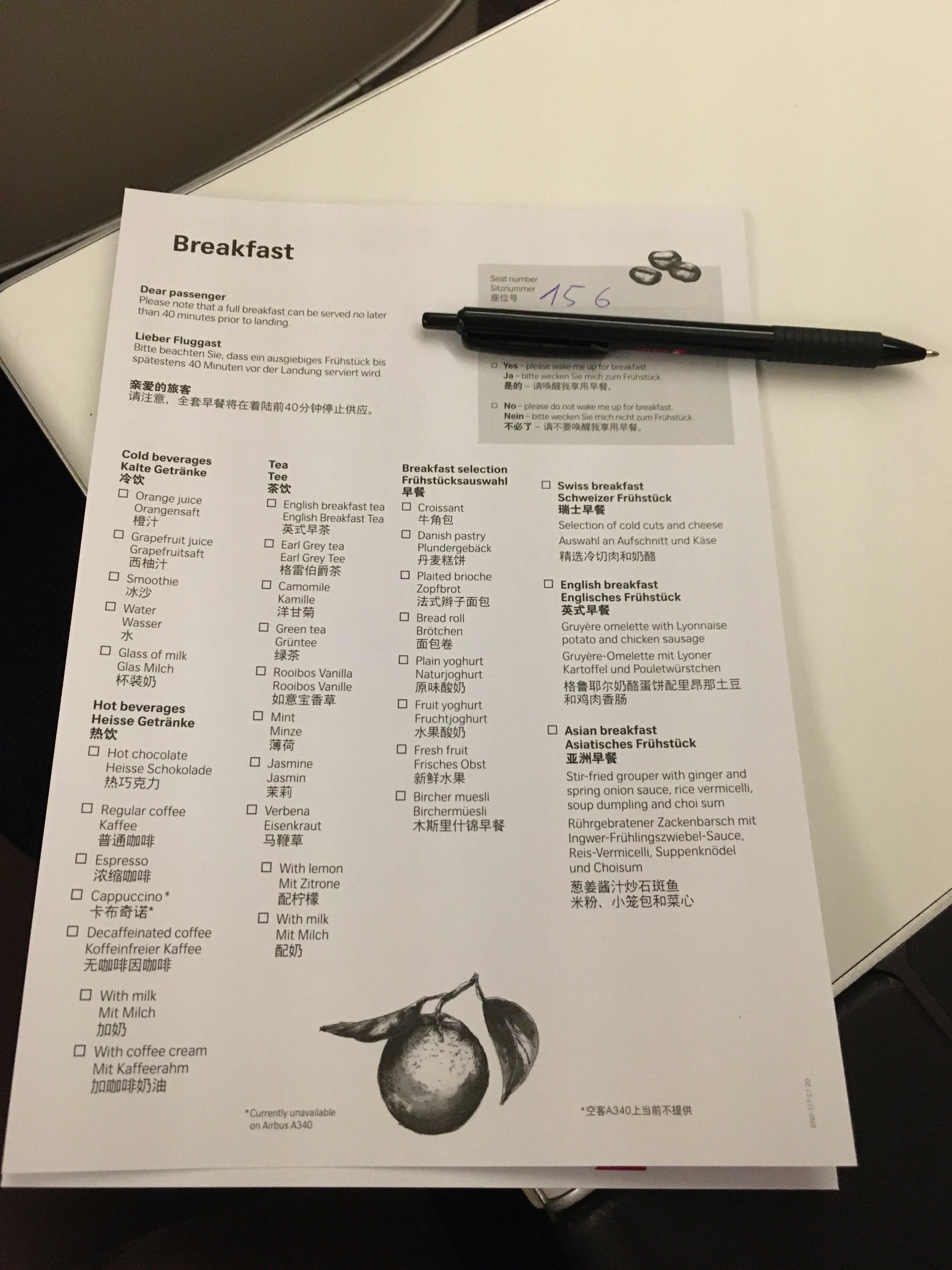 We were offered a pre departure beverage and hot towel and also received our menu and breakfast card we had to fill in.