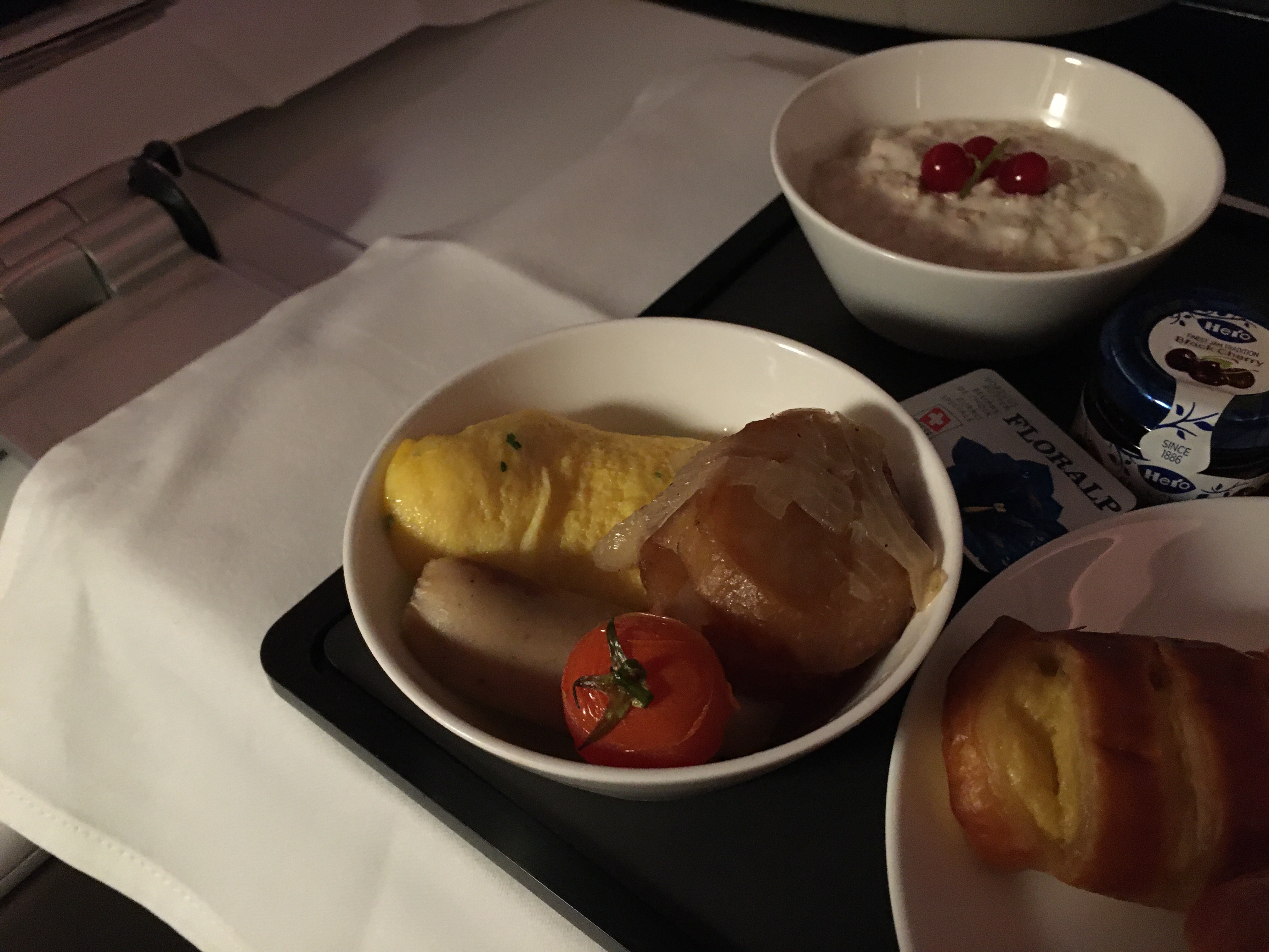 Before landing we were served the breakfast as filled in on the card. I selected the English breakfast which was actually quite delicious as far as airplane breakfasts go, only Thai’s breakfast to Sydney was better.