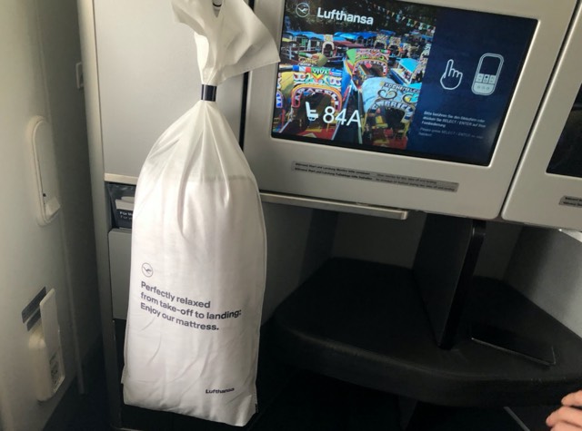 The inflight entertainment had a very large selection of films, series, music and games. Business passengers get to use AKG noise cancelling headphones, which were really good. A funny detail: Lufthansa also provides headphone covers, for the germaphobes amongst us.