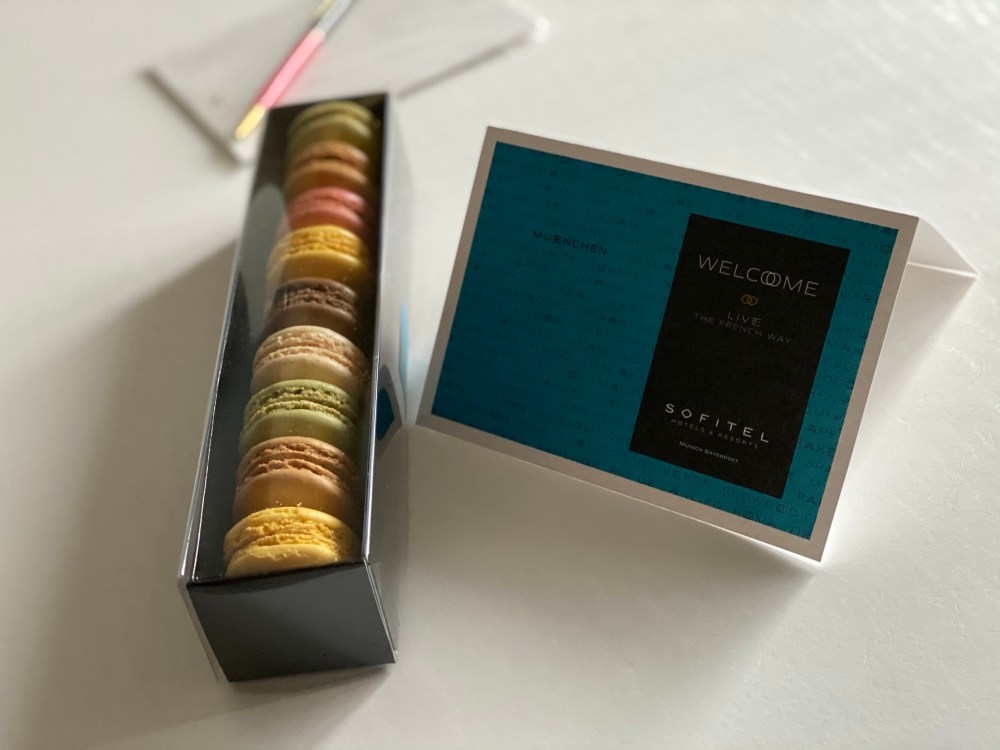 The minibar charged automatically upon taking stuff out, so we did not touch it. The tea and coffee facilities as well as one bottle of water each night where complimentary. We also received a welcome gift in the form of some delicious macarons. The WiFi worked pretty well, but Timothy found the desk not the most ergonomically to work on.