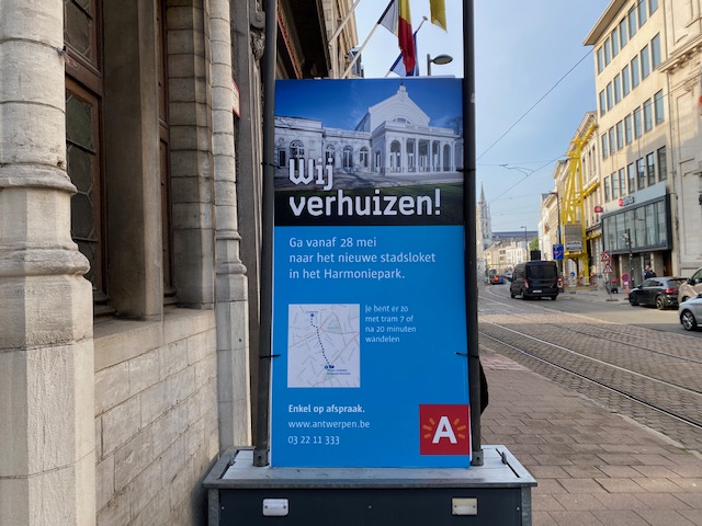 The District of Antwerp town hall moves from the Lange Gasthuisstraat in the city centre to Harmoniepark, not far away from the border with Berchem and its town hall. The date is set for 28 May.