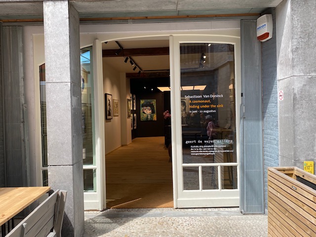 Now he opened his gallery in Blaumoezelstraat 2. It shares the space with vegetarian and vegan restaurant De Rosenobel. When the gallery closes, the restaurant opens.