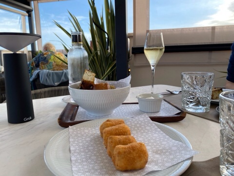 The first evening we had a dinner on the rooftop terrace which offers a basic snack menu, but everything is delicious. If you wish to enjoy a more elaborate meal you can dine downstairs at Dins, the main restaurant which we did a few nights later. We had also received a complimentary welcome drink here.