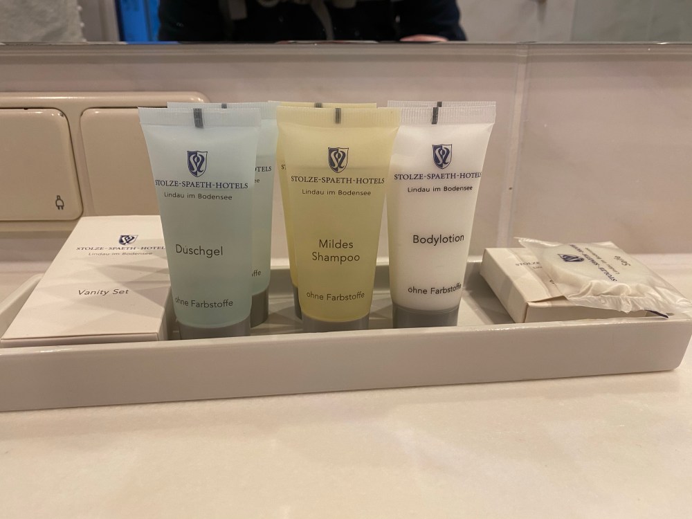 The bathroom also screamed 90s but provided everything you needed. It was small but clean. The products used where branded by the hotel.