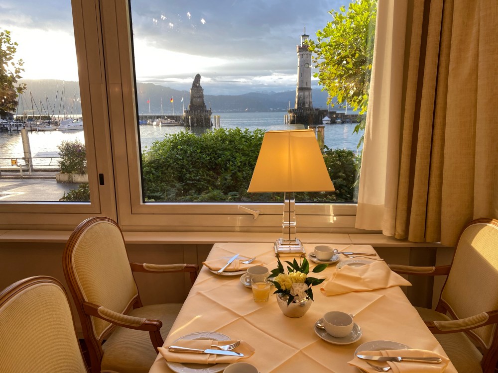 In the morning breakfast was served in the Bayerischer Hof restaurant, with a beautiful morning view over the harbour and Lake Constance. Still one of the better views I’ve had for breakfast so far, only in Sankt Moritz, Sydney and Budapest or on a cruise I’ve had similarly impressive views.