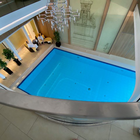 While the gym was only very basic with a few machines in a small attic room, the pool was much more impressive being divided over two floors. You had plenty of different nooks to be able to relax on some loungers and if the weather is nice you could also make use of the outdoor pool. The pool was clearly recently refurbished and had a nicer and more contemporary look and feel to it compared to the rest of the hotel, hopefully they will progressively refurbish the rest of the hotel in the same style.
