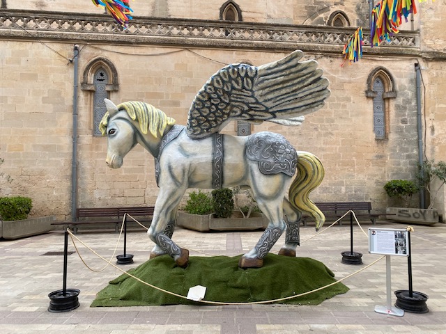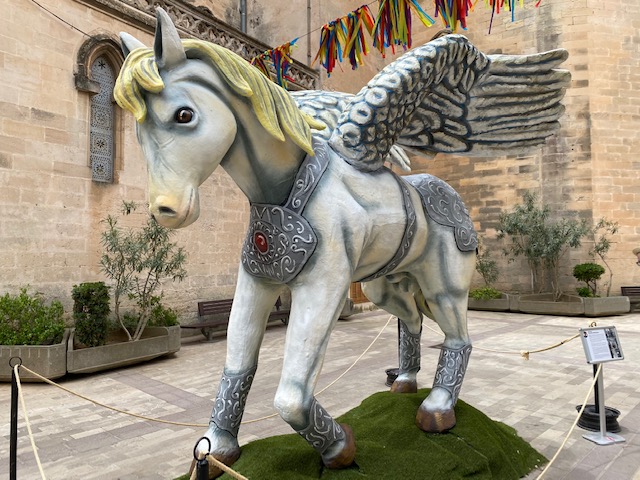 Sebastià Riera Pocoví and Toni Galmés Bennàssar created five large wooden, cardboard, foam and polyurethane figures that are related to an enchanted forest: a gnome, a fairy, a pegasus, a tree-man and a dragon. It gave the city centre an enchanted atmosphere.