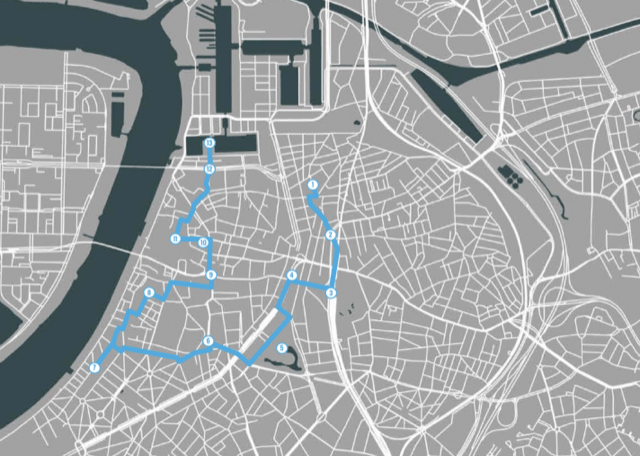 Panel 12 is in front of Ingrid Neven’s restaurant Pazzo. From there you finish at the MAS for panel 13.