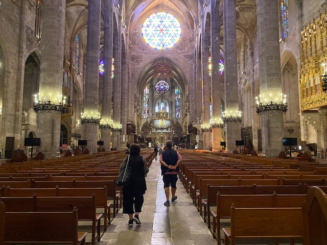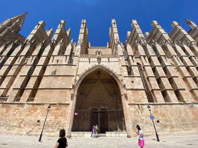 Designed in the Catalan Gothic style but with Northern European influences, it was begun by King James I of Aragon in 1229 but only finished in 1601. It sits within the old city of Palma atop the former citadel of the Roman city, between the Royal Palace of La Almudaina and the episcopal palace. It also overlooks the Parc de la Mar – where we resided – and the Mediterranean Sea.