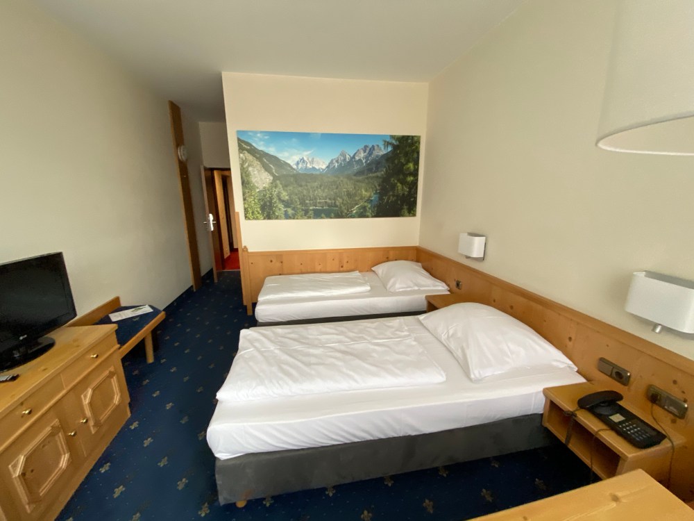 Anyway at check-in he “forgot” the coupon for a complimentary beverage courtesy of my ALL Gold status, he did make up for that by handing it to us when we came to ask for some pool towels when we wanted to use the pool later in the day. Another strange thing to happen was that our room number was changed using Tipp-Ex on the keycard envelope, we could clearly see under our room number 127 the original room number 106. It seems odd to change a room number that way, why not just write a complete new envelope? Also the next morning when we went to enquire about our complimentary GAPA guest card (a card which gives you discounts on several attractions in the region, as well as free public transport within Garmisch-Partenkirchen), the friendly lady was initially unable to find our guest cards under room 127, instead they were under 106, very very strange indeed.