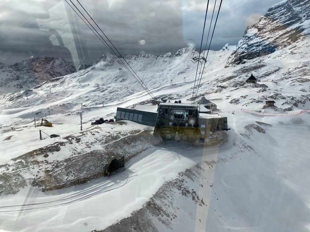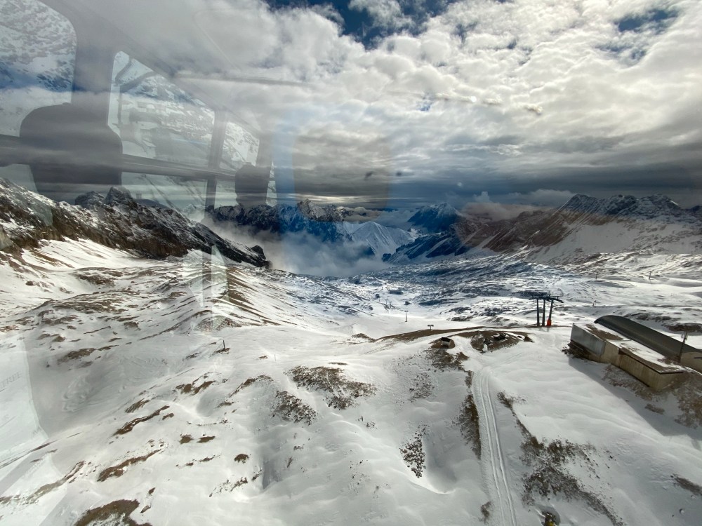 Upon leaving the protection of the building we made a synchronised shoutout out of joy due to some fresh snow blowing onto us. After walking around some more and taking pictures we continued onto the Gletscherbahn cable car taking us to the even higher summit of the Zugspitze itself across the glacier.