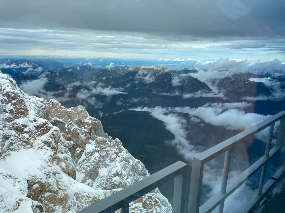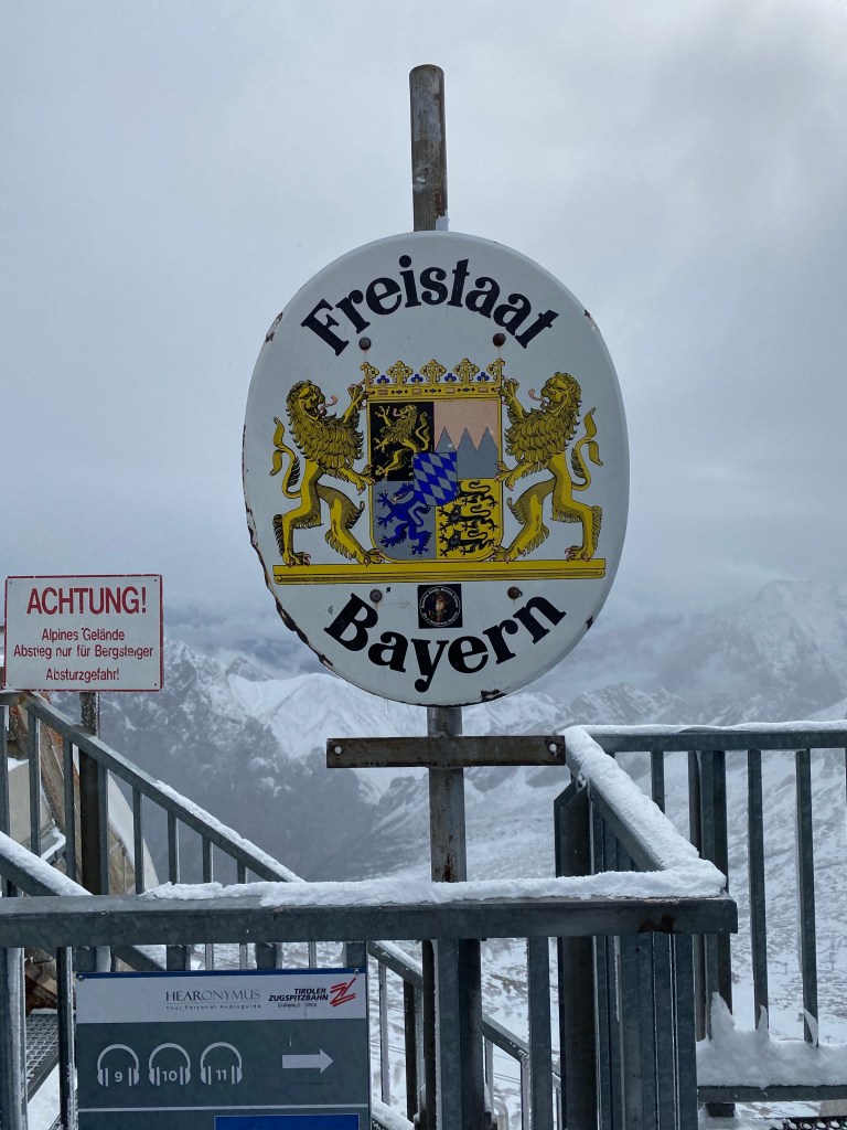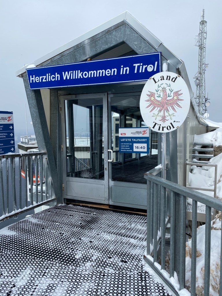 The Zugspitze summit can be reached from both the Austrian and the German side of the mountain, however due to Corona measures in place at the time of visiting the door forming the border between Austria and Germany was firmly shut and locked, disabling us to cross the border up on the mountain.