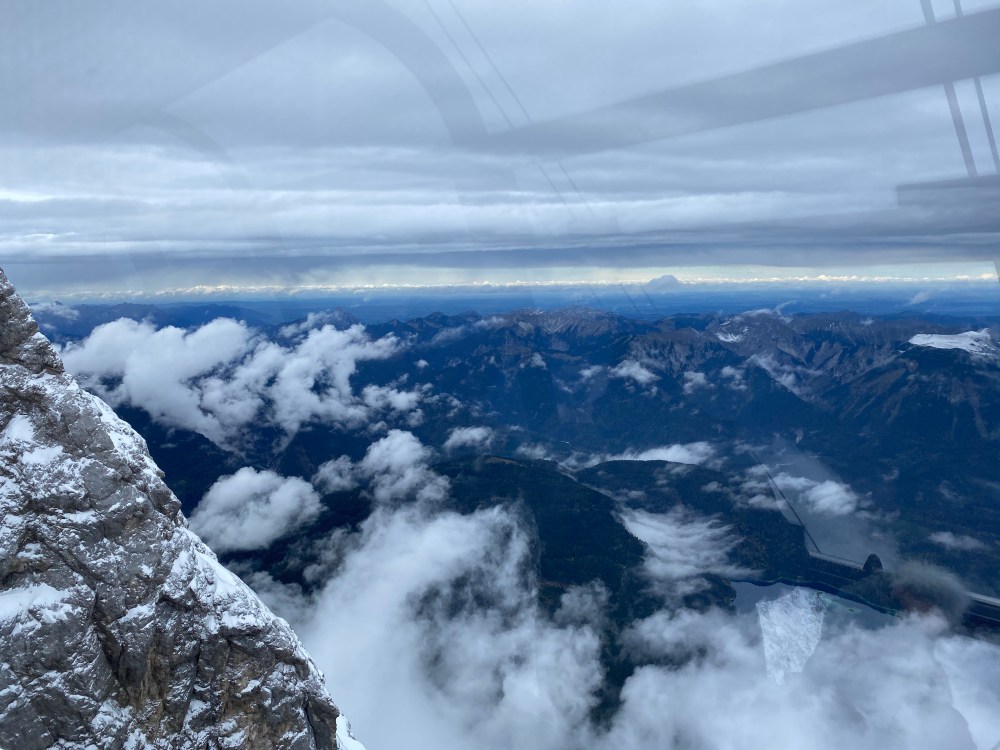 After our walk around and picture taking we enjoyed a small lunch with a scenic view. Afterwards we returned down again on the Seilbahn Zugspitze cable car, taking us from the summit back down to Eibsee. This was another spectacular ride, and thanks to not being covered in a tunnel we had some magnificent scenic views.