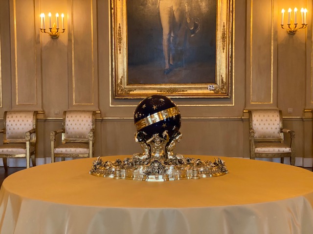 The Throne Room doesn’t have a throne. Belgian being a modern constitutional monarchy, there’s no official throne and neither is there a physical crown. Built under the reign of King Leopold II, the Throne Room is decorated in the centre by four low reliefs by Auguste Rodin. They represent the economic activities symbolising the Belgian provinces, with the exception of that of Brabant which hosts the Palace on its territory. The Scheldt and the Meuse, symbols of Flanders and Wallonia, by Thomas Vinçotte, are above the doors.