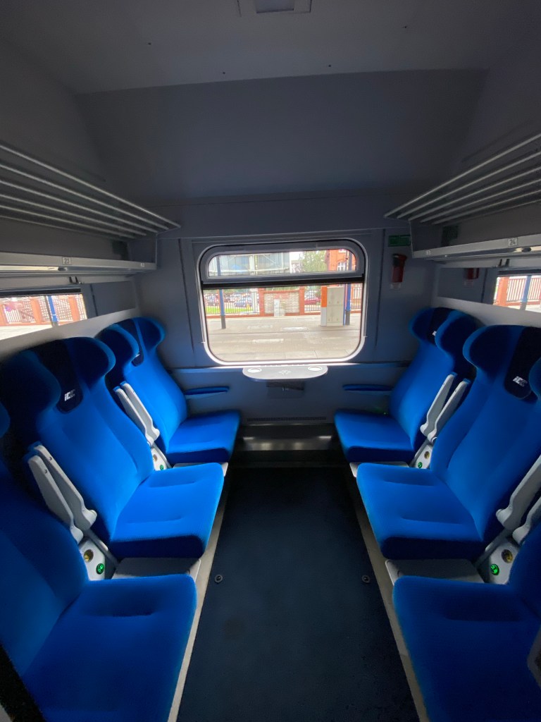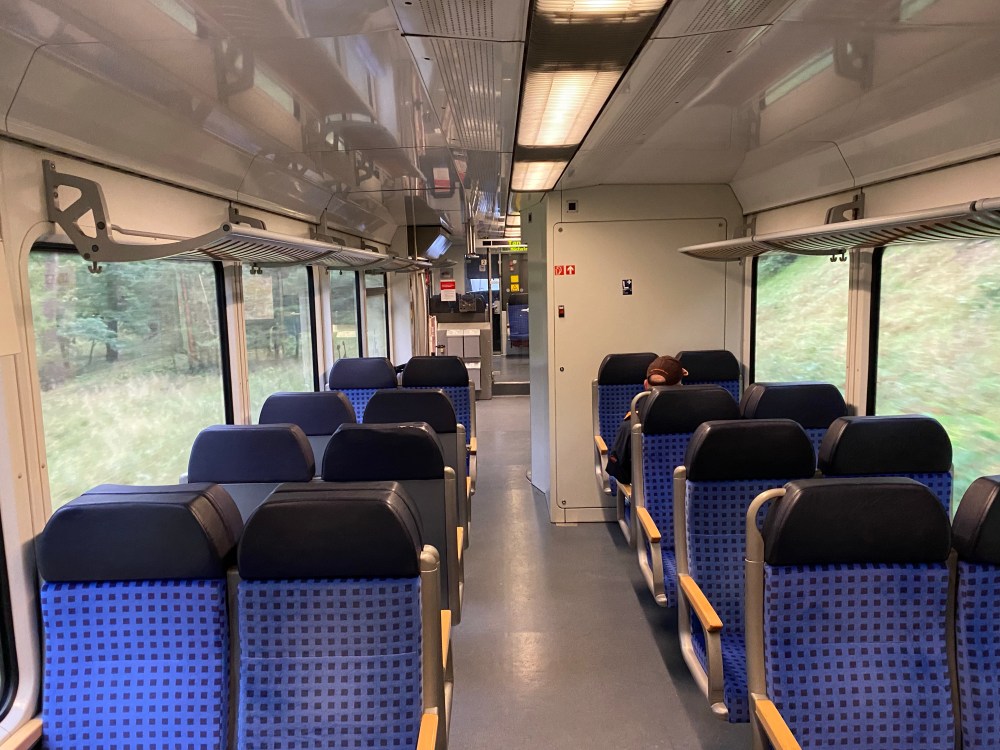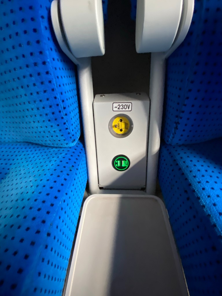No restaurant coach was in the composition, but a trolley service did pass through the train. The coaches looked and felt modern as they were renovated in 2020. Our first class compartment was clean and modern, with comfortable seats. On the table near the window there was a wireless charging point, while in between the seats there where standard European 220v power plugs as well as 2 USB ports for charging. The air-conditioning also worked really well, a bit too well for my liking, blasting ice-cold air into the compartment. During the ride you could feel the coaches where of an older build, just receiving a big modernisation. The ride was pretty rough and noisy, with lots of rattling sounds. The brakes made an enormous noise as they were still the old type of thread brakes instead of disk brakes.