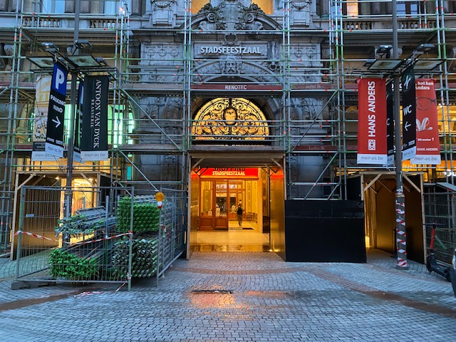 Shopping Stadsfeestzaal at the Meir in Antwerp is under renovation. For six months, the facade will be covered in scaffolding. The shopping center itself remains open.