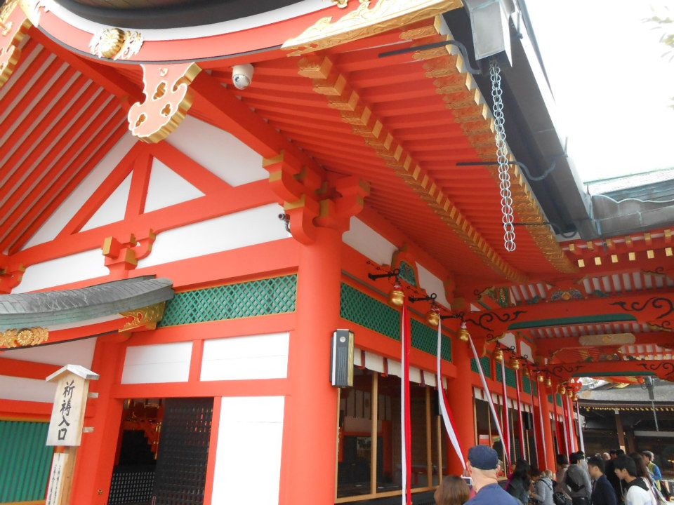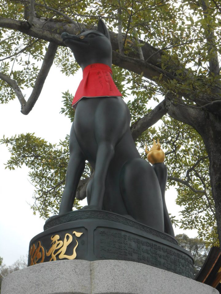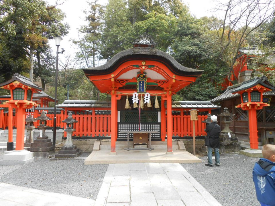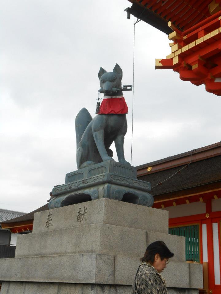 The torii gates are famous, the bamboo forest is famous, but the buildings are also worth your attention. And look out for foxes. Foxes (kitsune), regarded as the messengers, are often found in Inari shrines. One attribute is a key (for the rice granary) in their mouths.