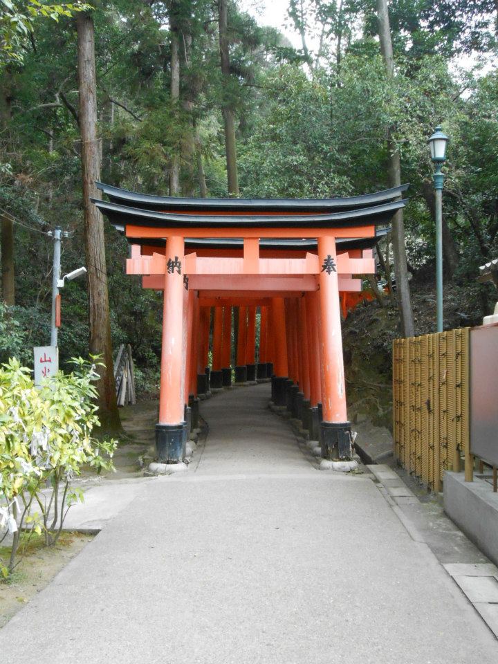 Fushimi Inari-taisha (伏見稲荷大社) is the head shrine of the kami Inari. The shrine sits at the base of a mountain also named Inari which is 233 metres (764 ft) above sea level, and includes trails up the mountain to many smaller shrines which span 4 kilometres (2.5 mi) and take approximately 2 hours to walk up.