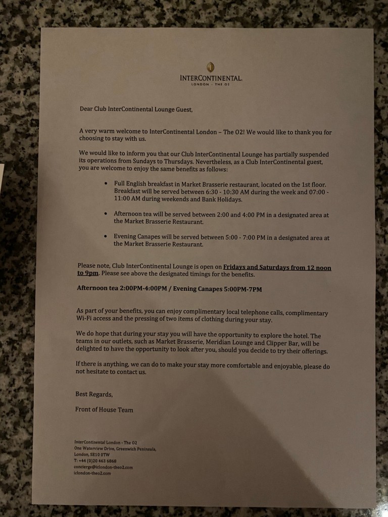 Is the InterContinental – the o2 doomed? Certainly not, the hotel has a lot in it for being outstanding, they just have to streamline their service again to avoid hiccups as much as possible.