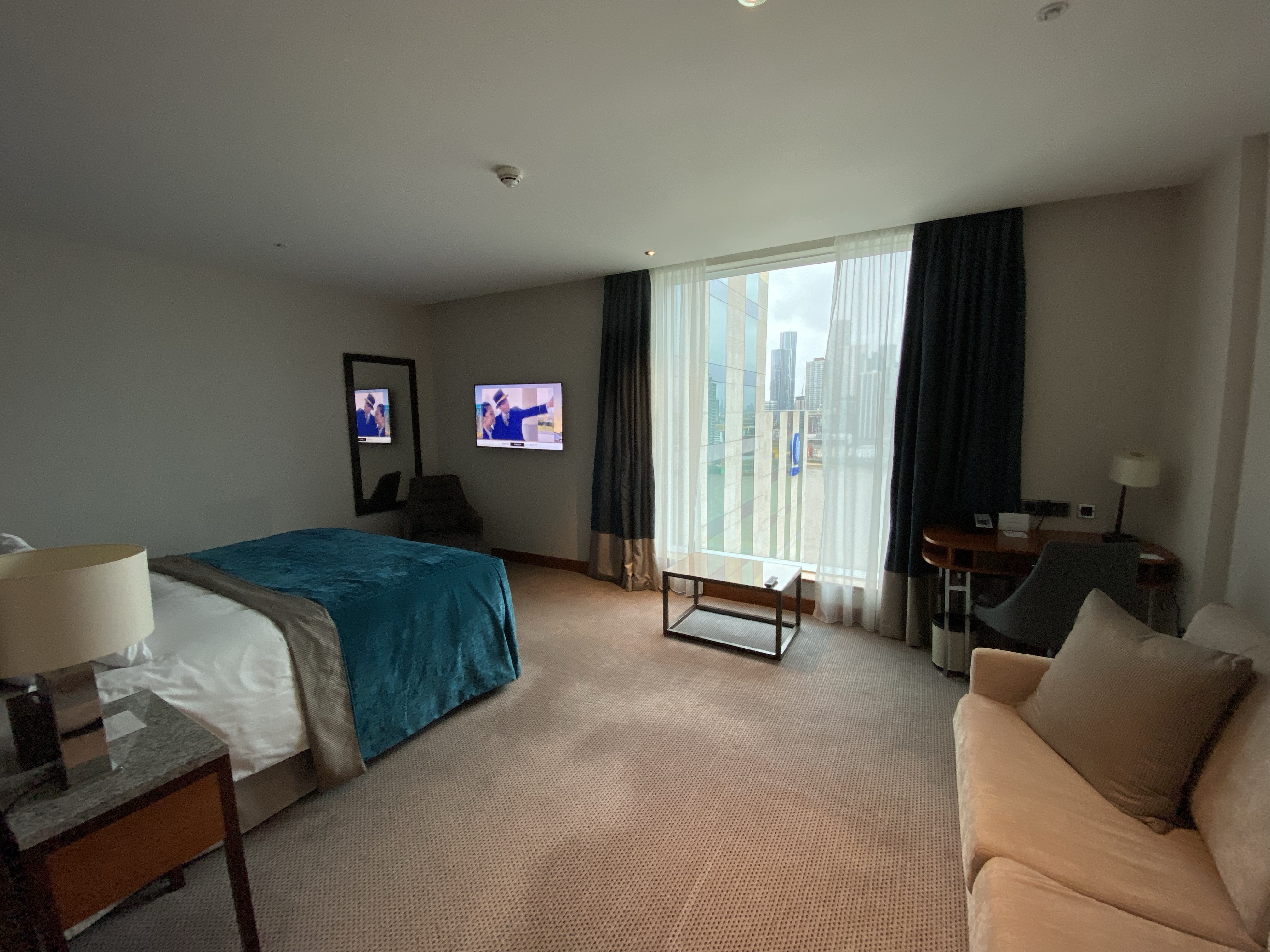 Our room was located on the 8th floor and was a King Club Room as booked, featuring a nice view over the river and Canary Wharf at the opposite side of the Thames. The bed was comfortable with power plugs at both sides of the bed and USB ports at one side. There was a lounge chair near the window and a big desk at the opposite wall of the bed.
