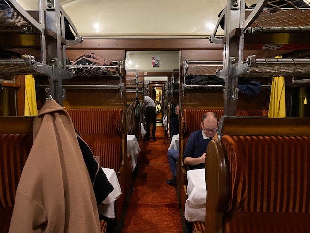 But the seats and suspension are comfortable. The steam heating system gives a very cosy, almost embracing warmth. It’s so nice. The compartment is a bit snug to fit four adults and a table, but it’s all fun.