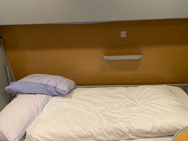 Perhaps the 160 euro question: how do you sleep? I slept okay. I woke up a few time, but then again, I always do when it’s a ‘new’ bed. The bed is comfortable and the pillows are firm. The duvet is warm and cosy. You do hear and feel the train moving, but I can shut that down mentally.