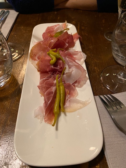 We started with a plate of ham ‘Noir de Bigorre‘.