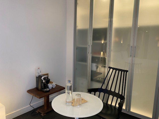 A grey fake padded corridor lead to our room. The predominantly white room was large, certainly for Paris standards.