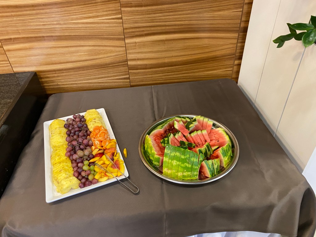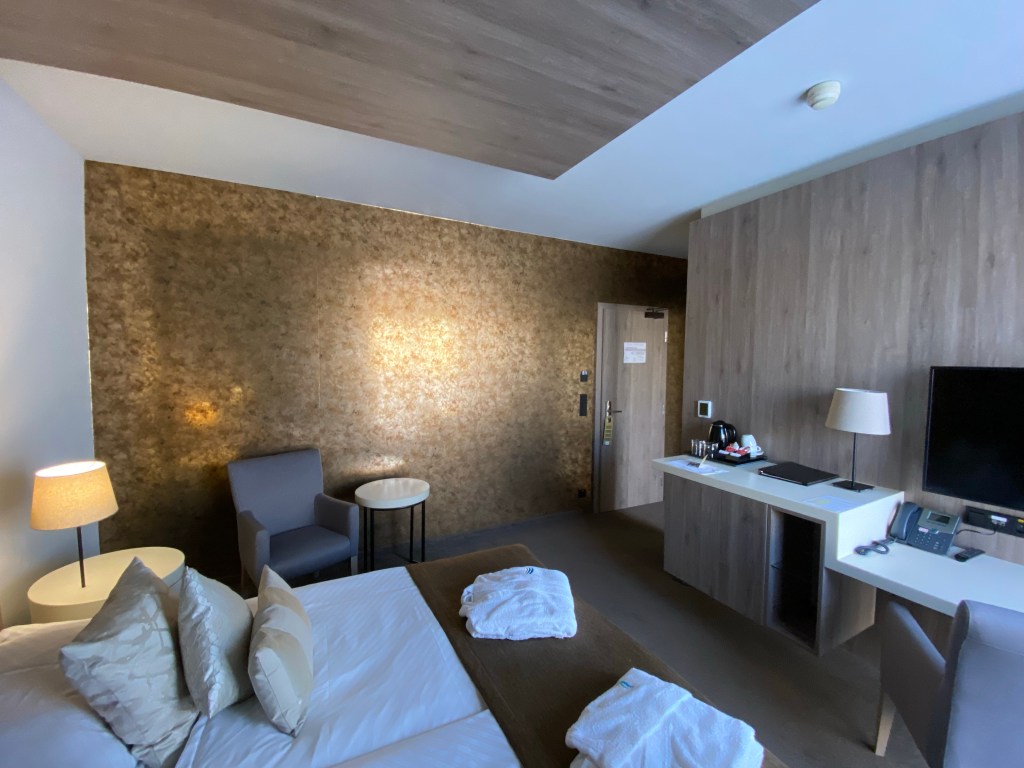 We were staying at the Seasons which was one of the on-site hotels, the other being the Mountain View at the far end of the building. Check -in was strict as they checked our COVID-19 passes and we had to sign a declaration of showing no symptoms, but friendly and efficient. We received a room on the 4th floor, featuring a view of the building roof.