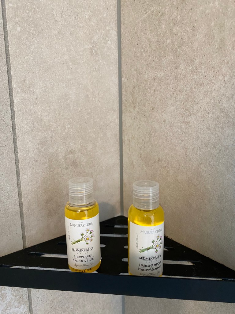 The bathroom was small but had a nice rain shower with good water pressure. Toiletries where both a big multi-use dispenser for hand soaps but small bottles for shower gel and shampoo. There where towels on the room as well as bathrobes which you could use to get changed in your room and wear to go to the pool area.
