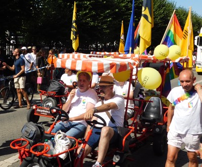 NGOs and charities such as Sensoa and Wel Jong; sports groups such as Active Compay; interest groups such as BSneax, bears, Polyamory Belgium; gay bars, clubs and bath houses such as Darklands, Club Random and Het Herenhuis; smaller businesses such as Flor Artes; bigger corporations such as Hays, political parties, a mutuality, culture organisations such as Opera Ballet Vlaanderen and Priscilla, Queen of the Desert; and the University of Antwerp.