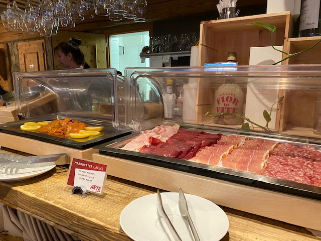 Hotel Arte in Sankt Moritz was included in the Switzerland Travel Centre package deal for the Glacier Express. This centrally located three-star hotel is also the home of La Stalla Restaurant, Chamanna smoker bar, Pizzaway takeway kebab and pizza, Hemingway night club and the Harry Lakewood Bar. I did have pizza at Pizzaway, which was only 5 to 6 CHF for a square slice, which is cheap here.