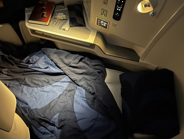 After the meal it was time for some sleep. Finnair does not offer a mattress pad or pajamas. On the bright side: the blanket was really soft and comfortable.