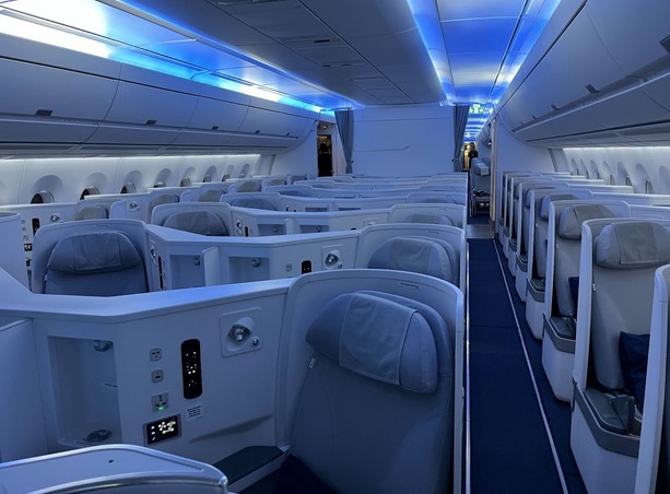 Our flight was delayed by 30 minutes, and sure enough 30 minutes after the scheduled boarding time boarding started. business class passengers and passengers who need assistance can board first. Finnair uses two jet bridges, so business class passengers enter through the forward door and turn right into the business class cabin.