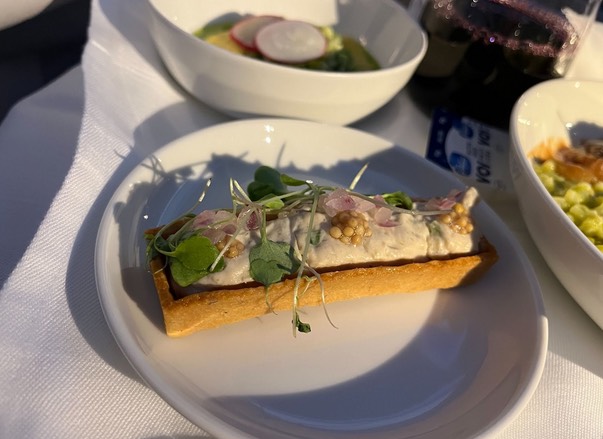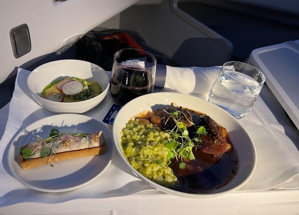 Another thing about the meal service: a lot of airlines stopped using trays in business class. They just serve the meal directly on the table cloth, like you would get in a restaurant. Getting rid of trays is something very simple without an added cost that immediately elevates the dinner experience, in my opinion.