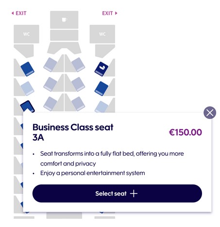 Finnair has three different types of business class fares and only the most expensive one has seat selection included in the ticket. We had a ‘classic’ fare, and there is also a cheaper ‘light’ fare. The fact that seat selection is not included in business class is already a bit odd, but the amount they charge to select a seat is simply ridiculous.