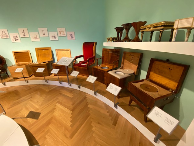 Luckily, there’s more than the monarchic Möbeln. There’s a collection of replicated interior design from the 20th century, a toilet seats corner and a look at bathrooms.