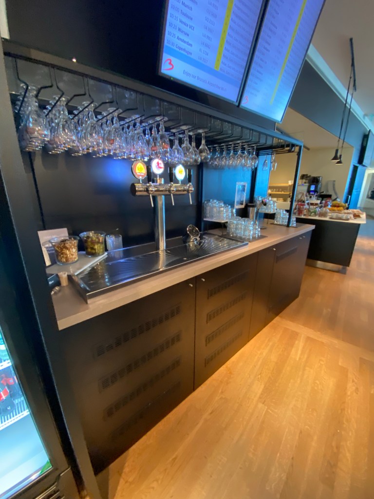 While the Diamond Lounge isn’t nearly as nice and attractive as Brussels Airlines’ the Loft it has improved a lot over last time I used it thanks to a long overdue refurbishment. Gone are the early 2000’s design replaced by a more contemporary design. There are two windows, one overlooking the remote gates of Ryanair Land and the other looking out over the gates areas down below in the main area of the A Gates.
