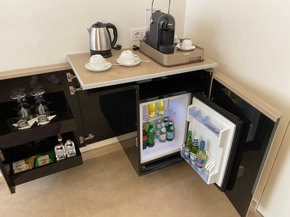 The main room also offered a bar area with both a Nespresso coffee maker and an ordinary water cooker for tea.