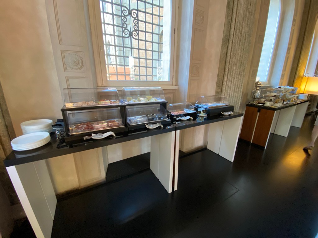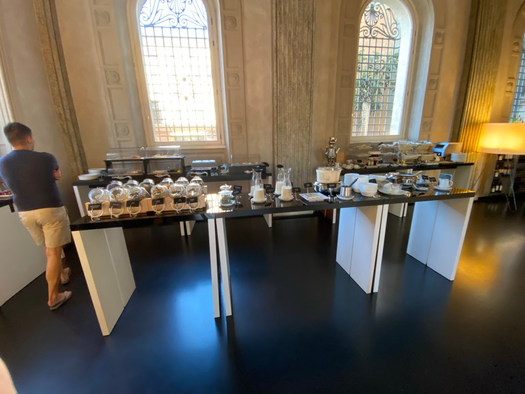 Breakfast in the morning is a buffet, with coffee and tea brought to your table on request as well as some egg dishes made to order. On the buffet there are some hot dishes as well as the usual bread and cold cuts. What stood out was the big offer of cakes and other sweet bites, which are typical for an Italian breakfast. They were by far the best the breakfast had to offer, and some of the best cakes I had in a hotel.
