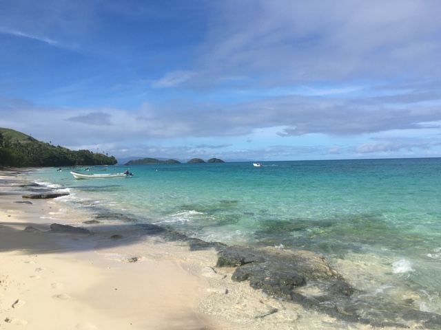 With three hundred inhabitants on Dravuni Island (Fiji), there’s ‘nothing’ there except friendly people, postcard-worthy vistas and pristine beaches. We intended to circle the island in foot, but at one point the beach stopped. So that didn’t happened. But we had a lovely walk on the beach, even wetting our feet. We don’t like the sand between our toes but it was a lovely walk.