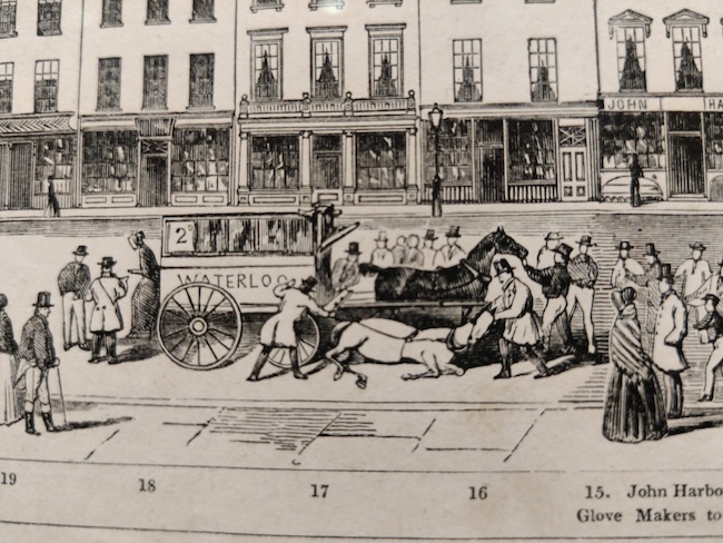 In the 19th-century London wheeled transport relied on horses. Horse-drawn hackney coaches could be hired for journeys across town. In 1805 there were 1100 licensed hackney drivers in London. They were the only people allowed to pick up passengers in the street.