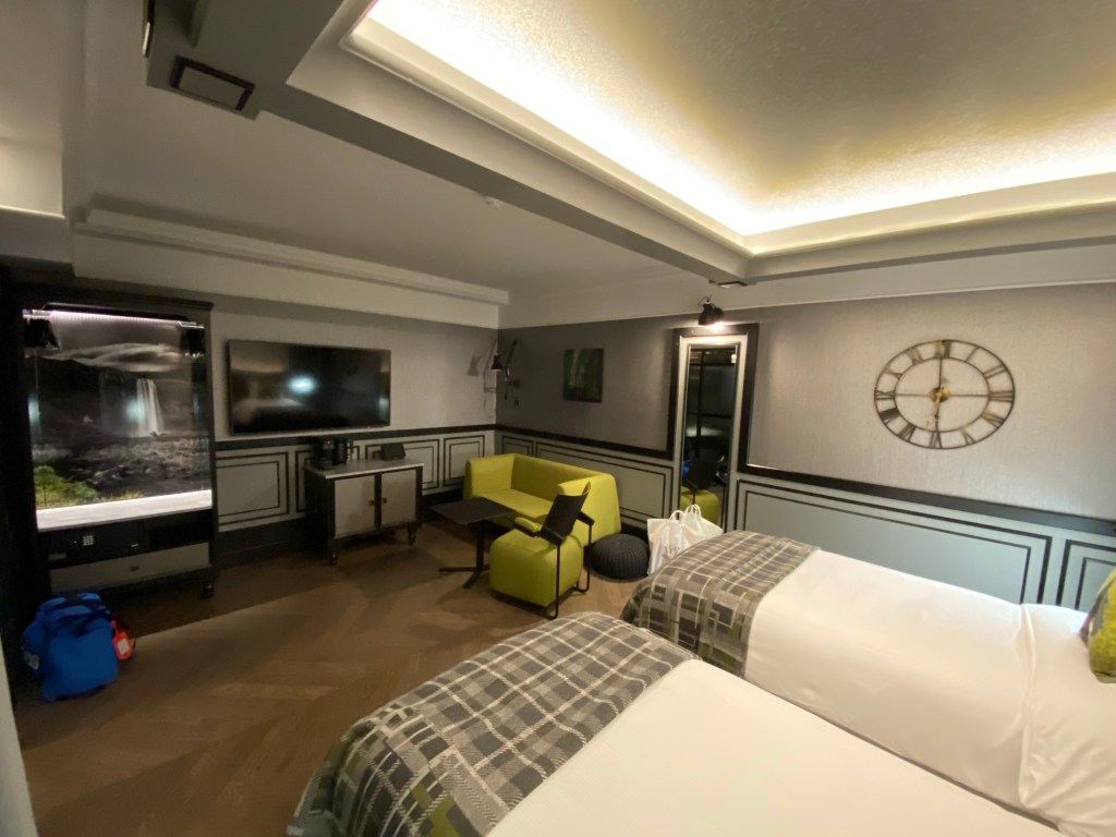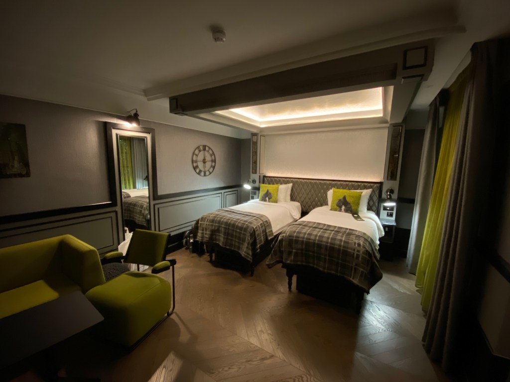 The room itself was rather spacious for London standards, with two comfortable single beds and a separate seating area. They also used a very nice and peculiar design, which all is linked through the story the hotel is built around.