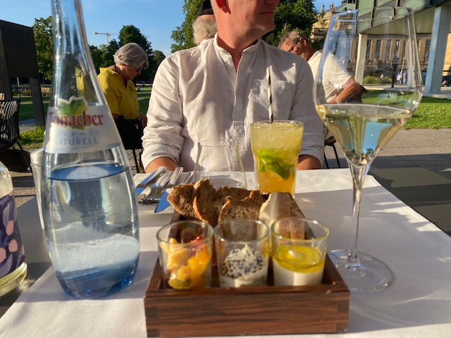 In our walks, we regularly passed the Schlossgarten or Palace Garden of Stuttgart’s Neues Schloss or New Palace. There spotted a nice looking restaurant and terrace, called Plenum. It turns out it’s located in the Landtag of Baden-Württemberg or State Parliament.